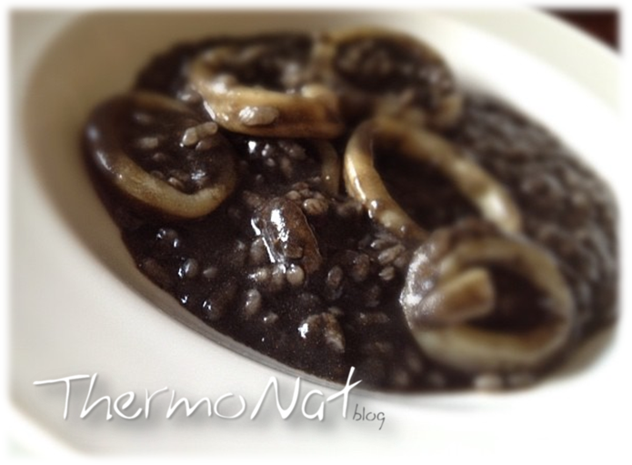 Afegim ara el brou ben calent (reservem una mica en un got, uns 100gr) i programem 15 minuts, 100º, gir invertit, velocitat cullera. Estem pendents del temps ja que quan hagin passat 5 minuts afegirem pel bocal la tinta de calamar ben dissolta en el brou que hem reservat amb una miqueta de sal.