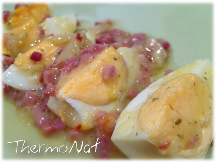 Pelem els ous, els tallem a quarts i els servim en una plata amb la salsa per sobre… espectaculars!